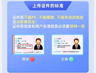 证件照片需清晰完整,不可PS、模糊或涂改,边框需拍摄完整,且证件信息需与填写内容保持一致。