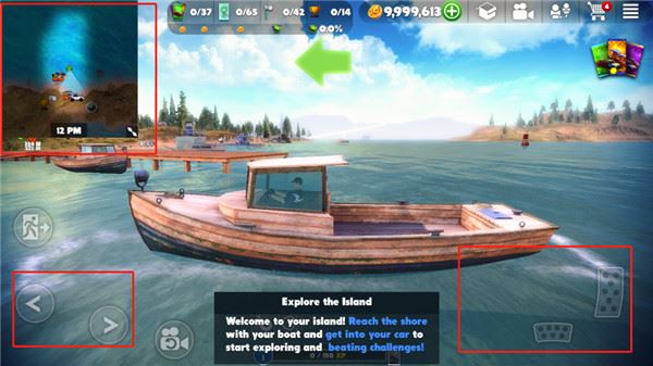4、根据蓝色方向标,将船驶向岸边,然后上车;